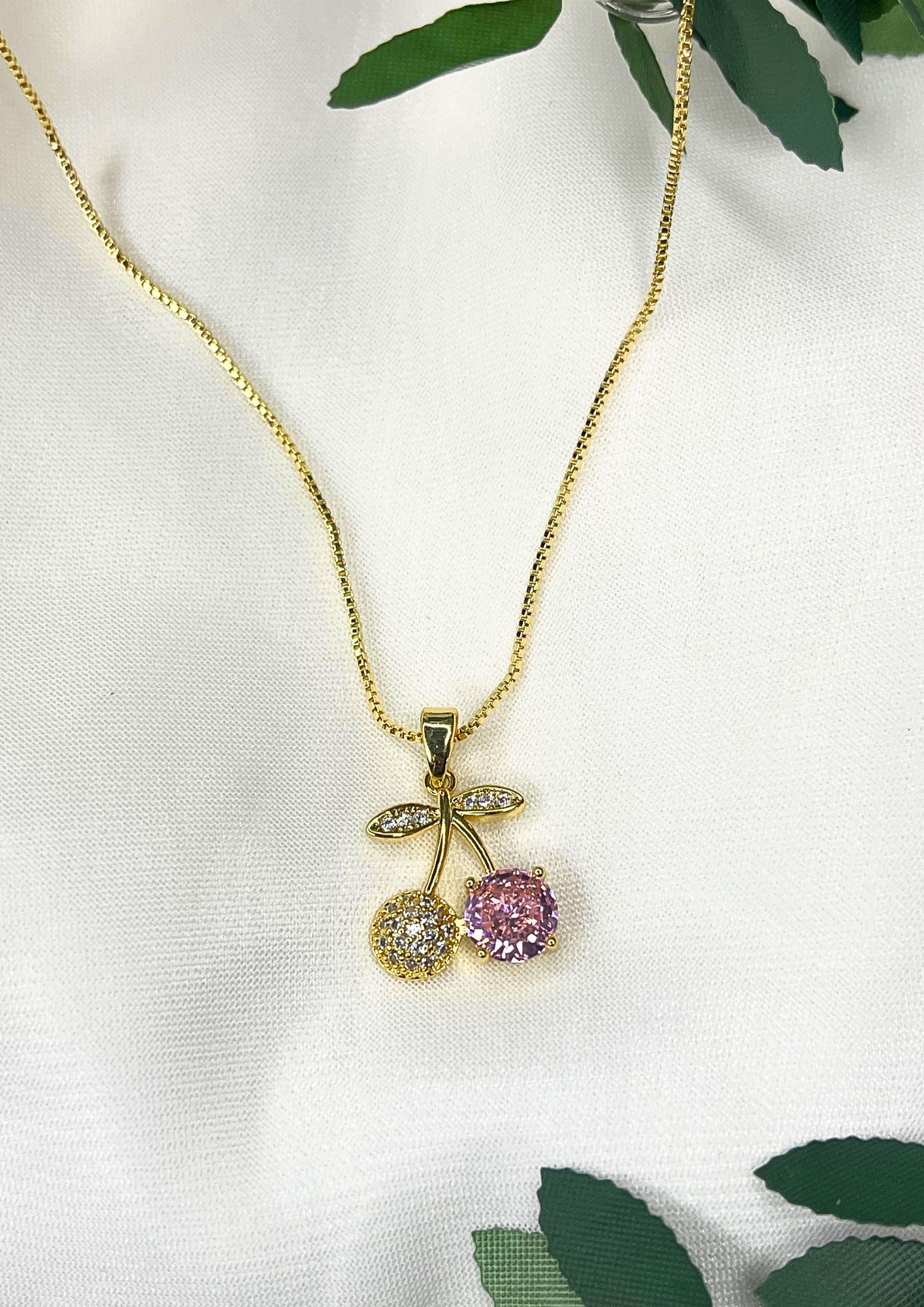 Delicada y femenina, esta cadena con dije de cereza diamantada en baño de oro de 18K es el toque perfecto para realzar tu estilo con un detalle brillante, original y encantador 💖. El acabado diamantado resalta con cada movimiento, aportando luz y elegancia.