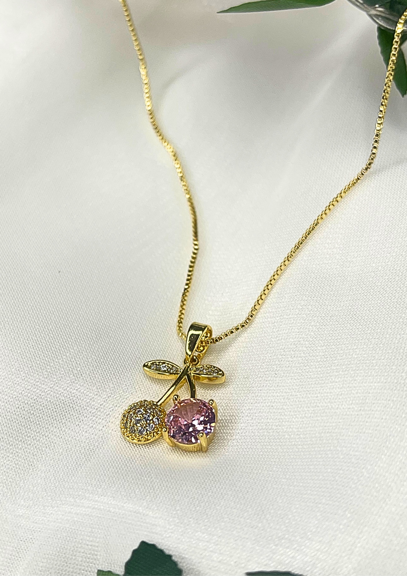 🍒 Cadena Cereza Diamantada en Baño de Oro 18K – Dulce brillo que enamora ✨