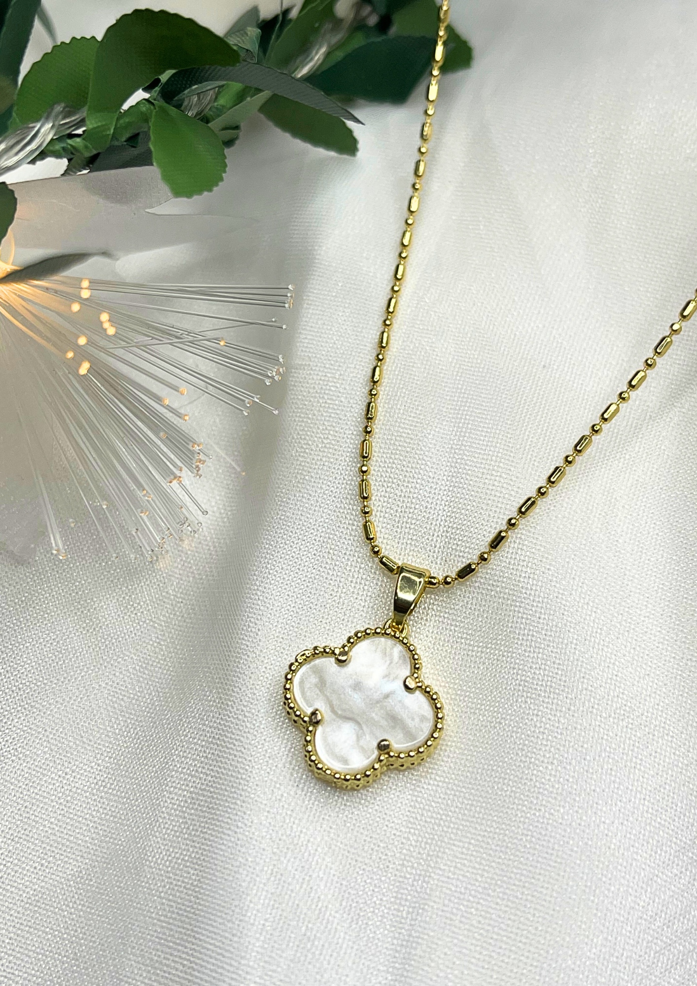 Inspirada en el icónico diseño Van Cleef, esta cadena con trébol blanco en baño de oro de 18K es sinónimo de elegancia, feminidad y buen gusto 💖. Su diseño delicado y brillante la convierte en el accesorio perfecto para cualquier ocasión.